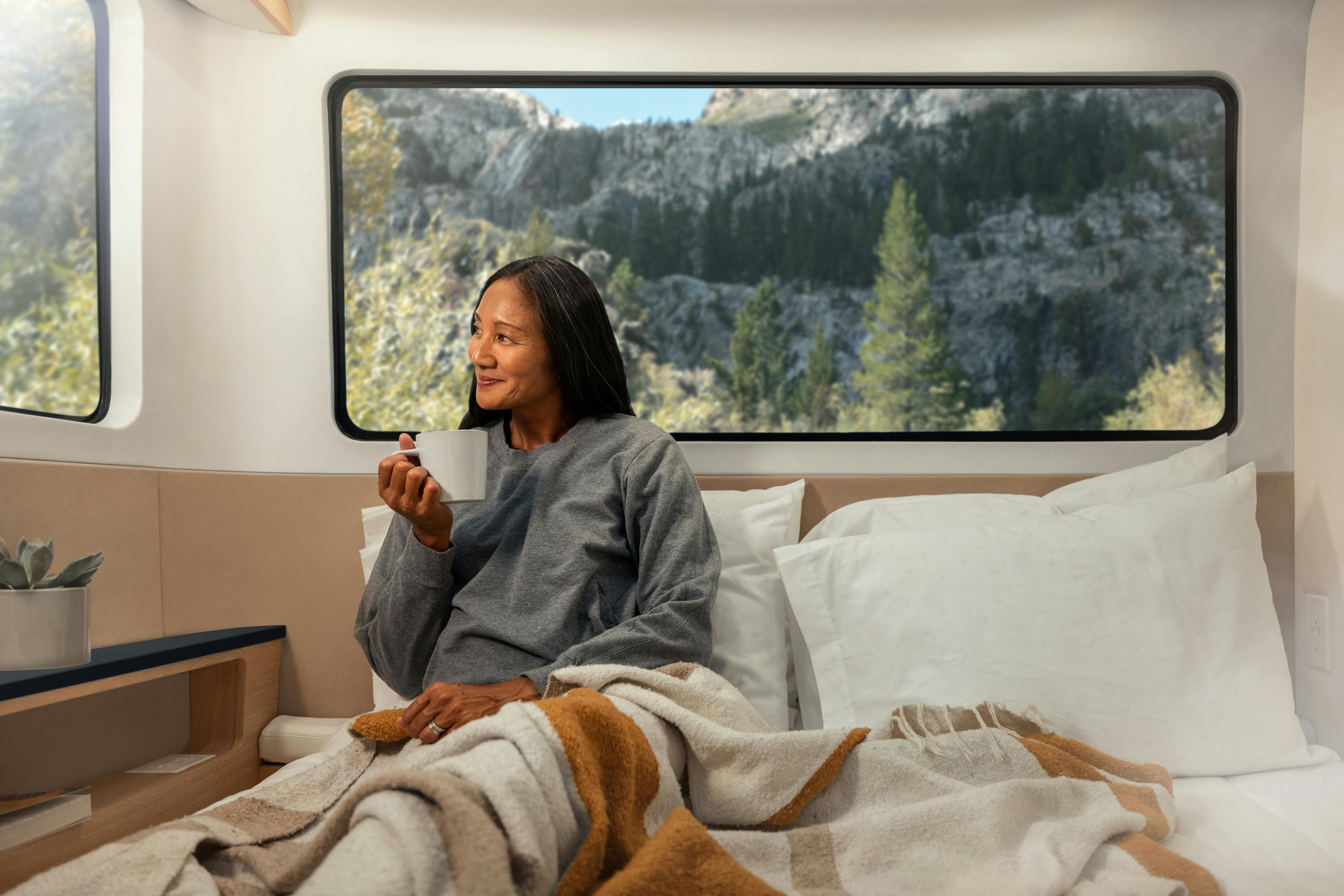 Lightweight, flexible furnishings help you move from leisure time to work time within seconds. The queen bed converts to a work-from-anywhere office with mobile internet, integrated USB-C outlets, LED task lighting, and plug & play Starlink connectivity*. *separate subscription required